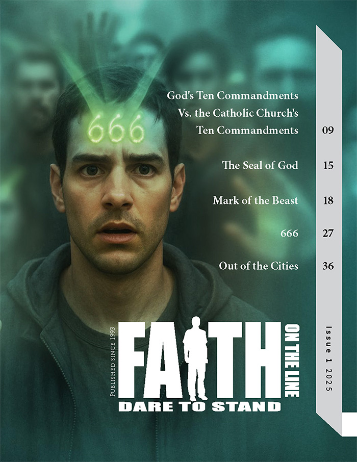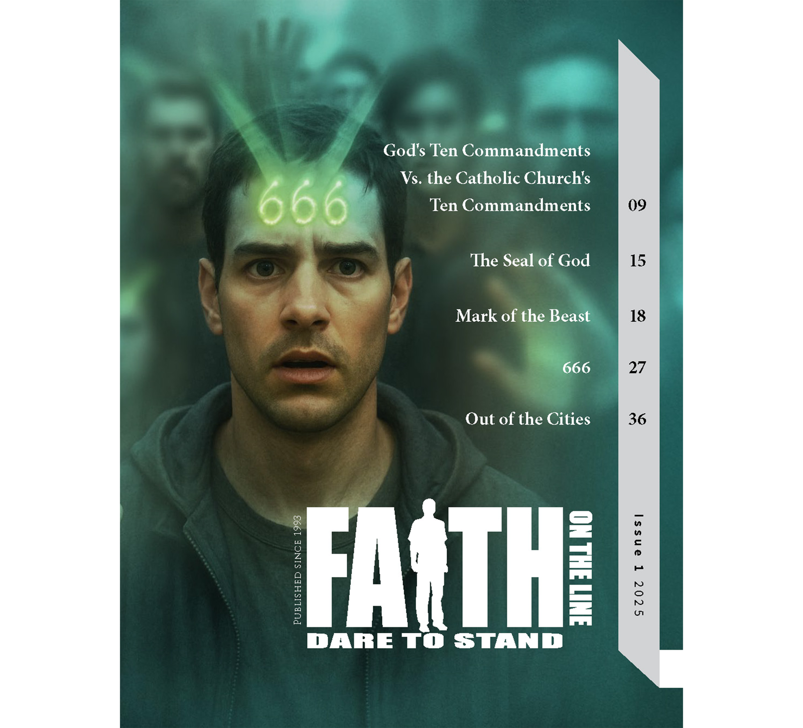 Enjoy a complimentary copy of our Faith on the Line Magazine! This magazine is published quarterly and features in-depth articles and beautiful colorful hi-quality imagery on a variety of spiritual topics to help you grow in your walk with Christ. such as the mark of the beast, when is the time of the end, the death of protestantism, prophecies, and so much more! If you want to get stimulating topics and something great to share with friends and family, this is it!